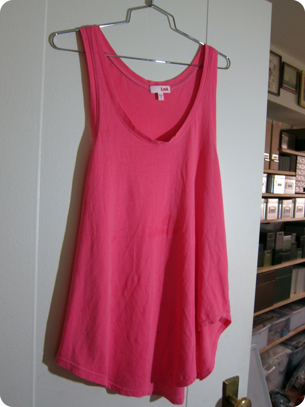 Nicki stopped by with a stained shirt and an hour before she had to go to work to stain another shirt at the restaurant. She hates pink and doesn't know why she bought the shirt in the first place but came to the conclusion that she should just dye it and solve the stain and pink problem in one shot.