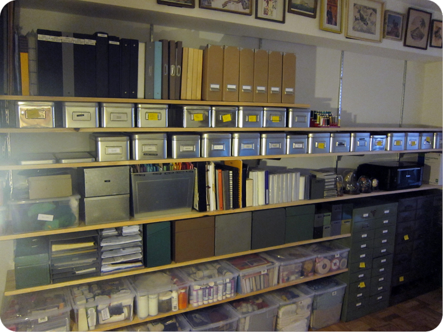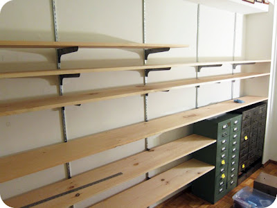 Ashley and I built shelves for utility purposes, with standards and pine wood.